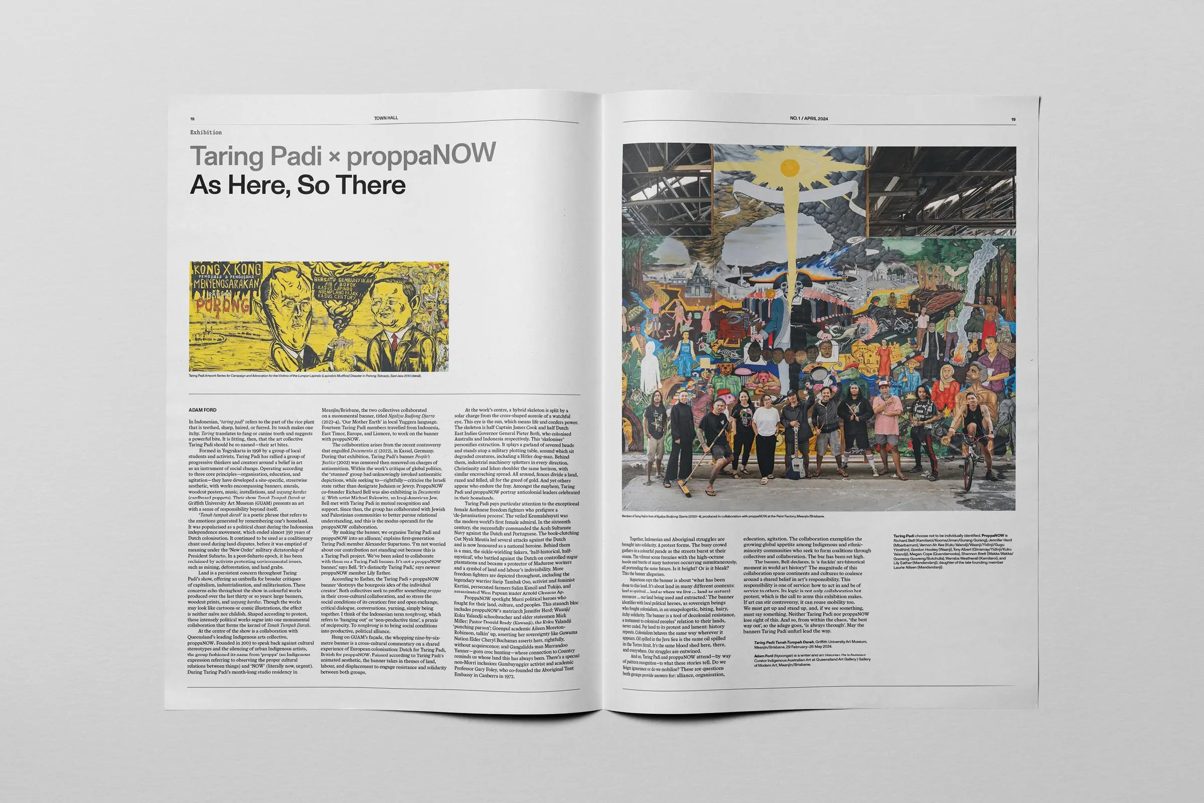 Town Hall is a quarterly community newspaper produces by Brisbane's Institute of Modern Art. With previews and profiles, op-eds and interviews, news and a quiz, Town Hall is a deep dive into all there is to see and know about Queensland art.